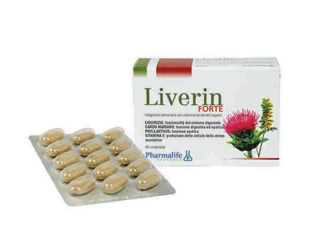 LIVERIN FORTE: Integrator Alimentar për mbrojtjen natyrale të mëlçisë në rastet e hepatitit kronik, hepatit viral B dhe C. Përdorimi: 3 tableta në ditë me shumë ujë.