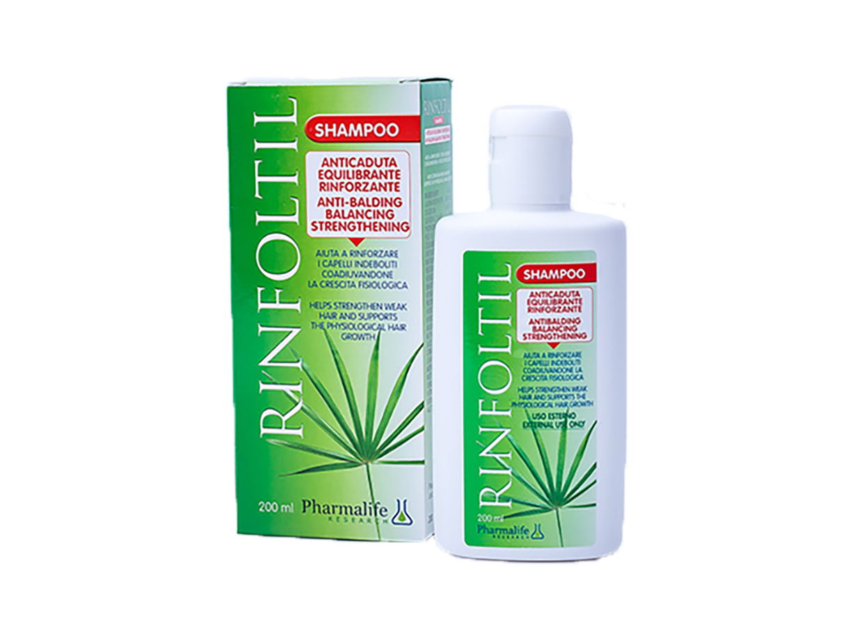 RINFOLTIL SHAMPOO ANTICADUTA: Ndihmon ne forcimin e flokeve te dobet duke ndihmuar ne rritjen fiziologjike te flokut. Eshte produkt natyral me efekt eikulibrues, forcues, dhe kunder renies se flokut. Perdoret ne floke te lagur, masazhohet dhe shpelahet me uje te bollshem, keshillohet te perdoret e shoqeruar me flakonet kunder renies se flokeve te lartpermendur.